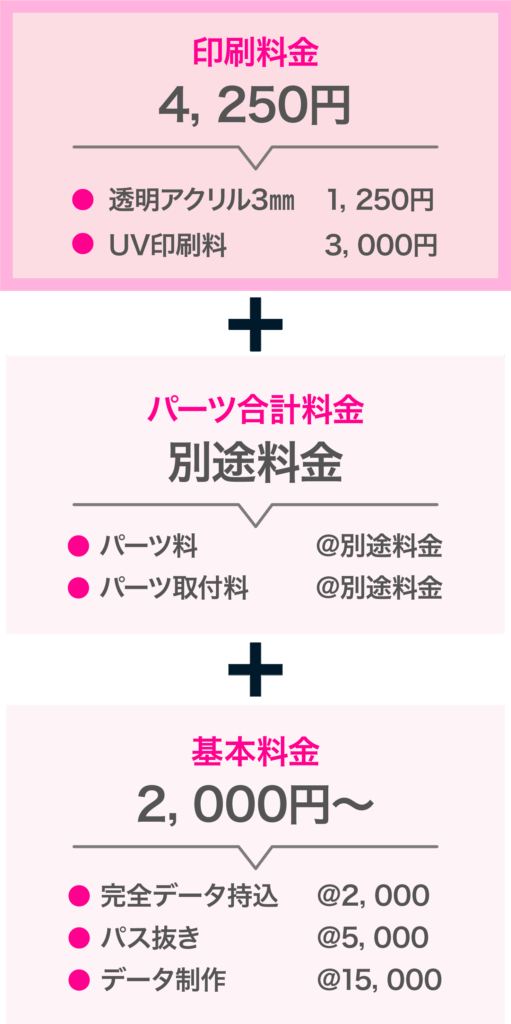 ※4 印刷料金4,250円の場合の1コあたりの単価です。基本料金@2,000円〜は別途必要となります。