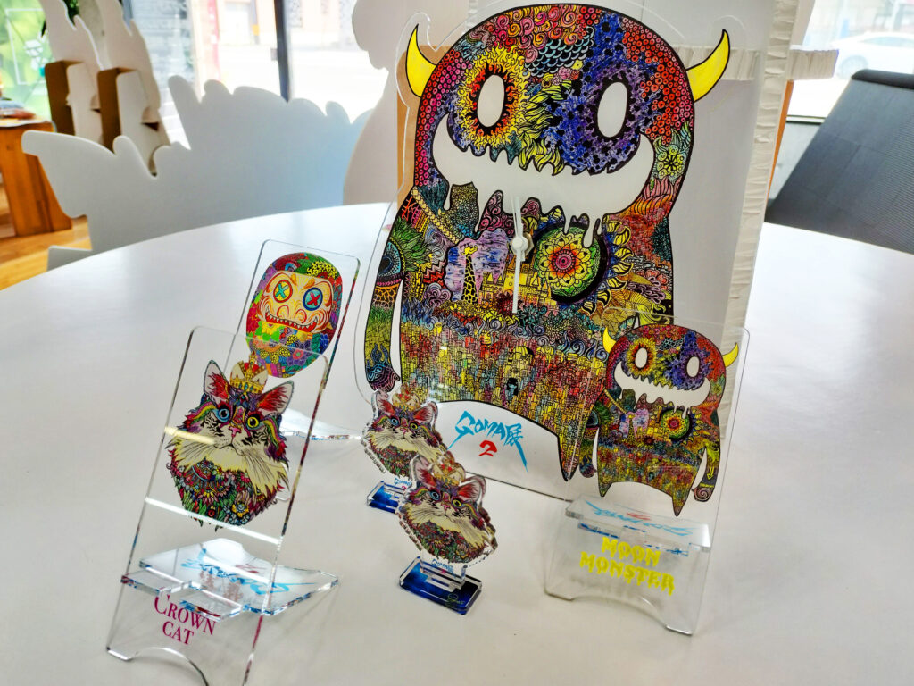GOMA展2、GOMA Art Exhibition2【Extention】にて販売中の一部グッズを制作させていただきました。今回はスマホスタンド、アクスタなどをはじめ、アクリル時計を製作しました。パーツの組み合わせ次第で様々な雑貨の制作が可能なのもアクリル製品の特徴。あなただけのオリジナルグッズ、制作受注中!